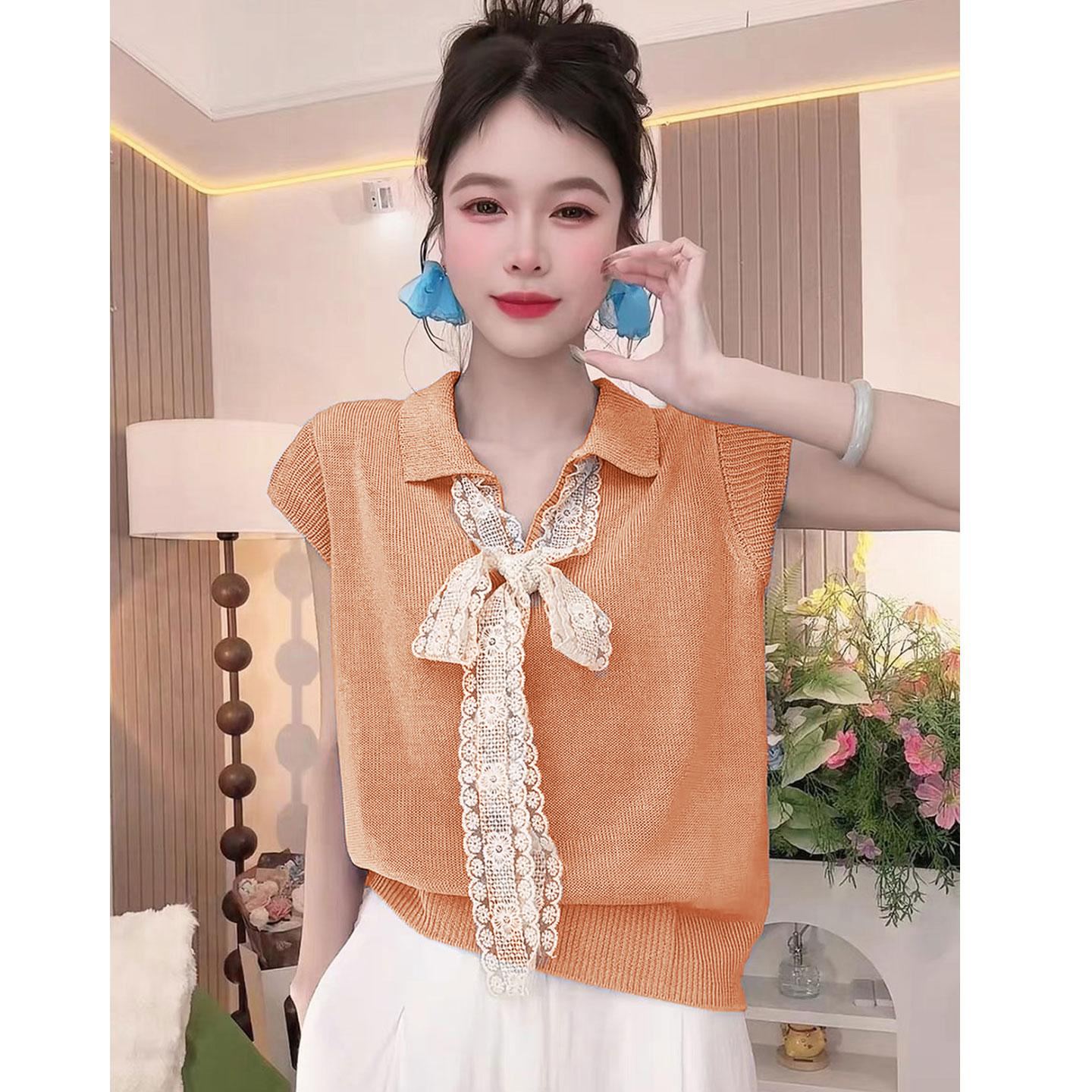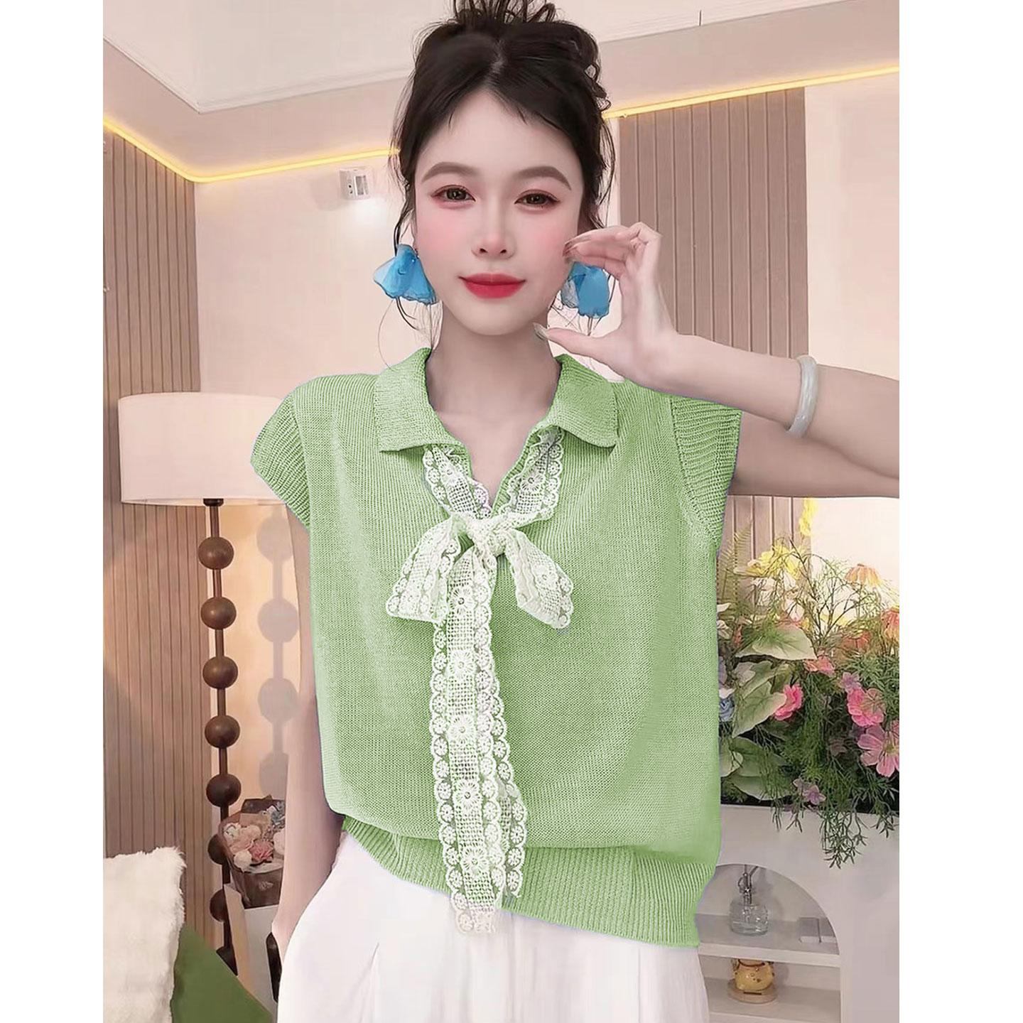 20分鐘前【台灣出貨】火爆折扣中!夏裝新款蕾絲拼接蝴蝶結冰絲針織衫 - 【四入組】任選4件 NT$ 1380